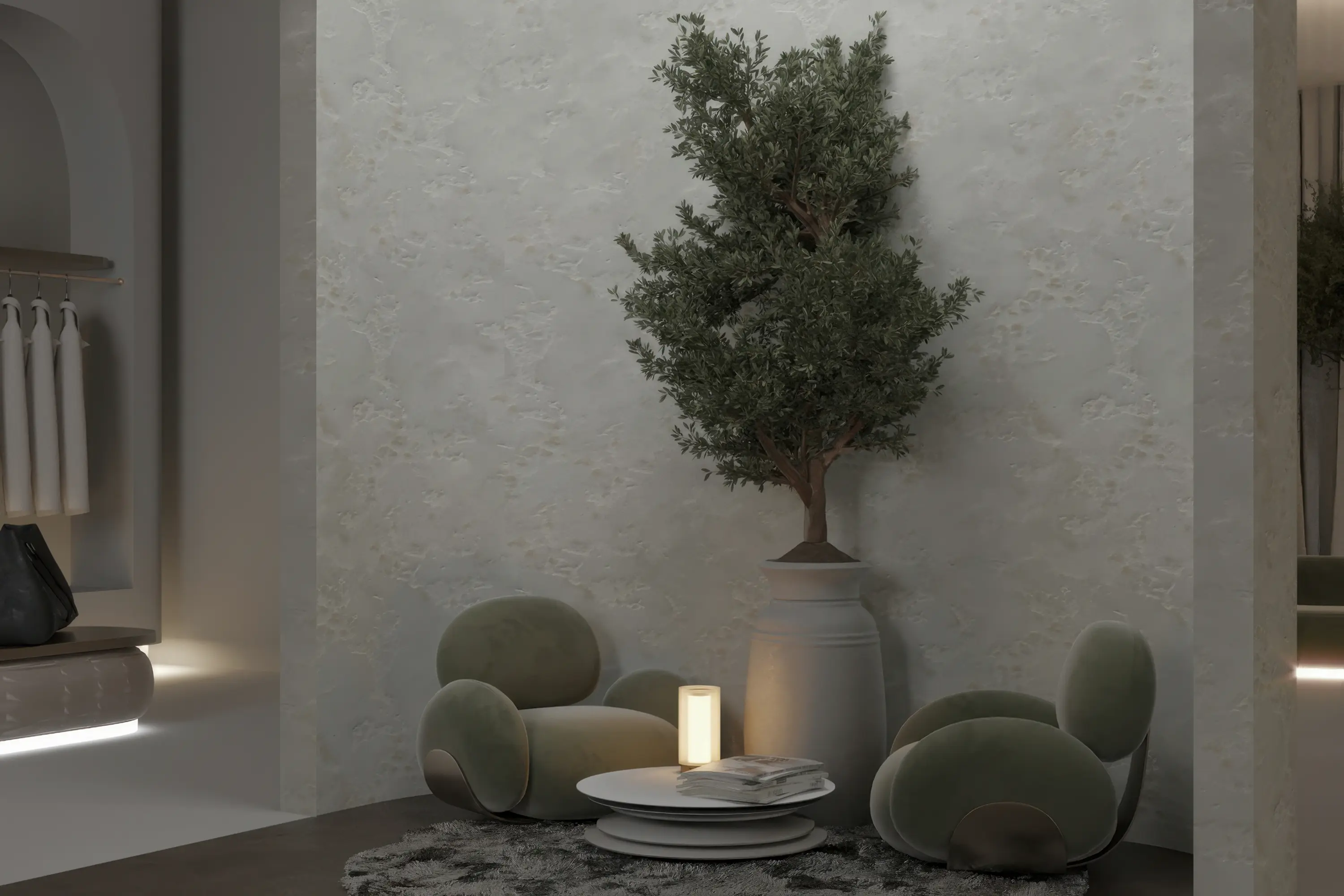 Универсальное решение для интерьеров с акцентом на природную роскошь. Покрытие легко наносится и образует прочное износостойкое основание. «Фоссе» гармонично впишется в гостиные, кабинеты и зоны релаксации в стиле ар-деко, неоклассика или органический модерн.